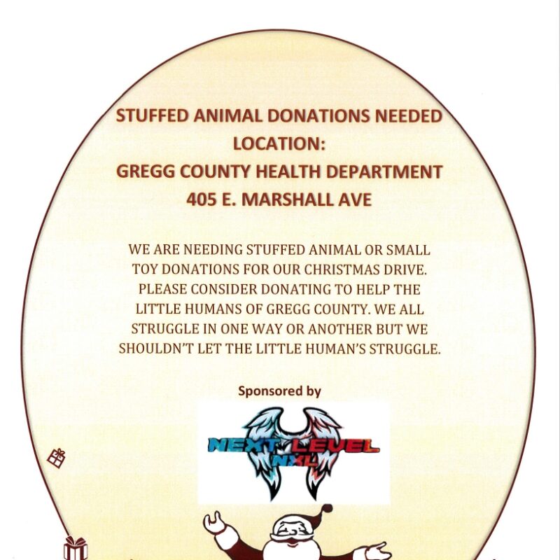 We are needing stuffed animal or small toy donations for our Christmas Drive. Please consider donating to help the little humans of Gregg County. We all struggle in one way or another, but we shouldn’t let the little human’s struggle.